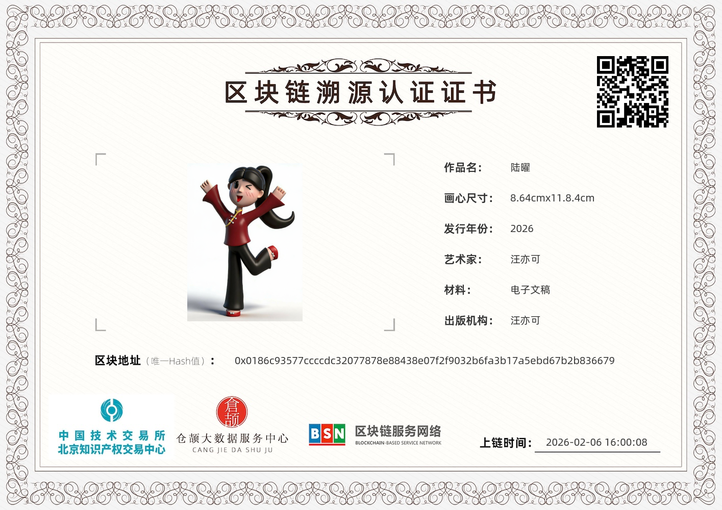 这是一款融合了中式传统元素与现代萌系风格的 3D 卡通形象,以 “元气国风少女” 为核心设定,传递出活泼喜庆的视觉感受。 它以经典的红黑配色为主,上衣采用改良式立领设计,搭配标志性的中式盘扣与黄色镶边,既保留了传统服饰的辨识度,又通过宽松的喇叭袖与阔腿裤造型,增添了现代时尚感。高马尾发型与俏皮的 wink 表情,配合单腿跃起、双臂张开的动作,将少女的活力与喜悦展现得淋漓尽致。 圆润的造型与哑光质感,让整体形象兼具亲和力与国风美感,既适合作为节庆主题的 IP 形象,也能衍生为表情包、文创周边等内容,在传统与潮流的碰撞中,诠释着青春洋溢的国风魅力。
