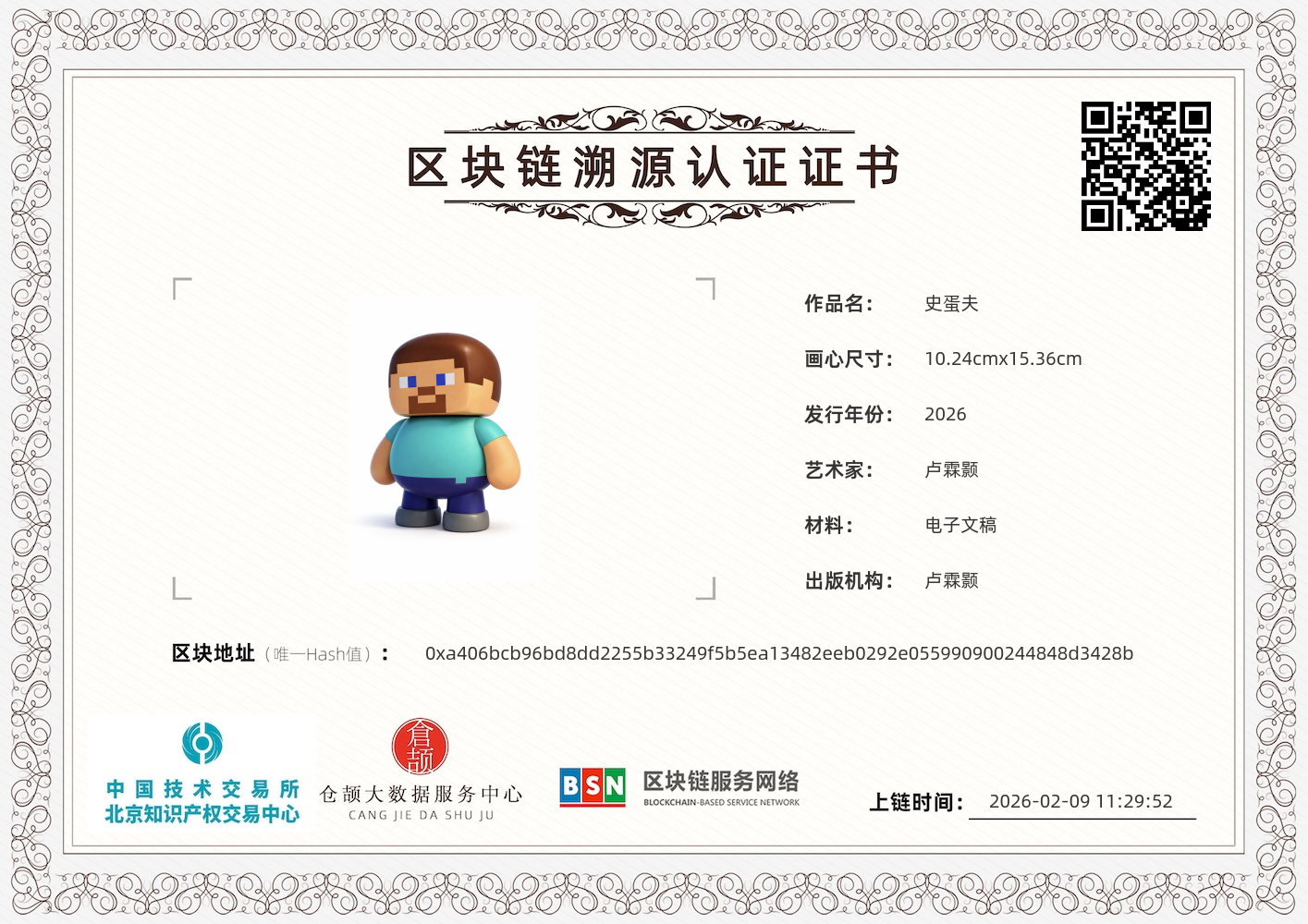 以经典沙盒游戏角色为原型,结合 Q 版萌化风格重塑形象,保留原作核心辨识度的同时,赋予圆润可爱的体态特征,打造兼具怀旧情怀与软萌质感的经典 IP 形象,传递轻松、童趣、复古的视觉气质。 整体采用原作标志性的蓝绿色上衣、深蓝色下装搭配灰色鞋履,还原经典配色体系,面部保留棕色短发、蓝色眼眸与标志性胡须,高度复刻角色原生特征;身形采用圆钝化 Q 版比例,弱化棱角线条,强化软萌亲和的触感,让经典形象更贴合当代潮玩审美。