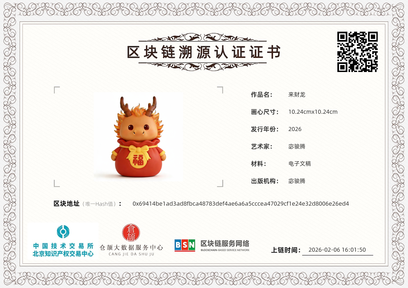 以东方瑞兽龙为原型打造的萌系 3D 形象,核心设定聚焦 “招财纳福” 的吉祥寓意,用软萌治愈的气质消解传统神兽的威严感,契合大众对新年好运、温暖陪伴的情感需求。 整体采用暖橘色为主色调,头部鬃毛呈现火焰般的橙黄渐变质感,搭配深棕色的龙角强化瑞兽识别性;身着红底配黄色领结的传统服饰,胸前印有 “福” 字纹样,将年味与招财属性视觉化;圆滚滚的身形与澄澈的圆眼设计,让萌感与吉祥感兼具,形成高辨识度的视觉符号。