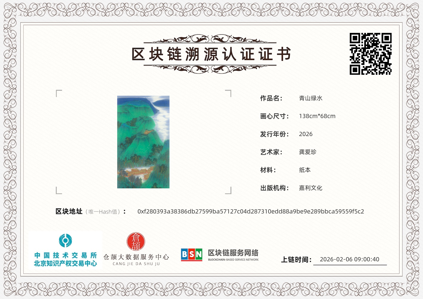 2.龚爱珍 青山绿水 138x68cm 2026 2.4