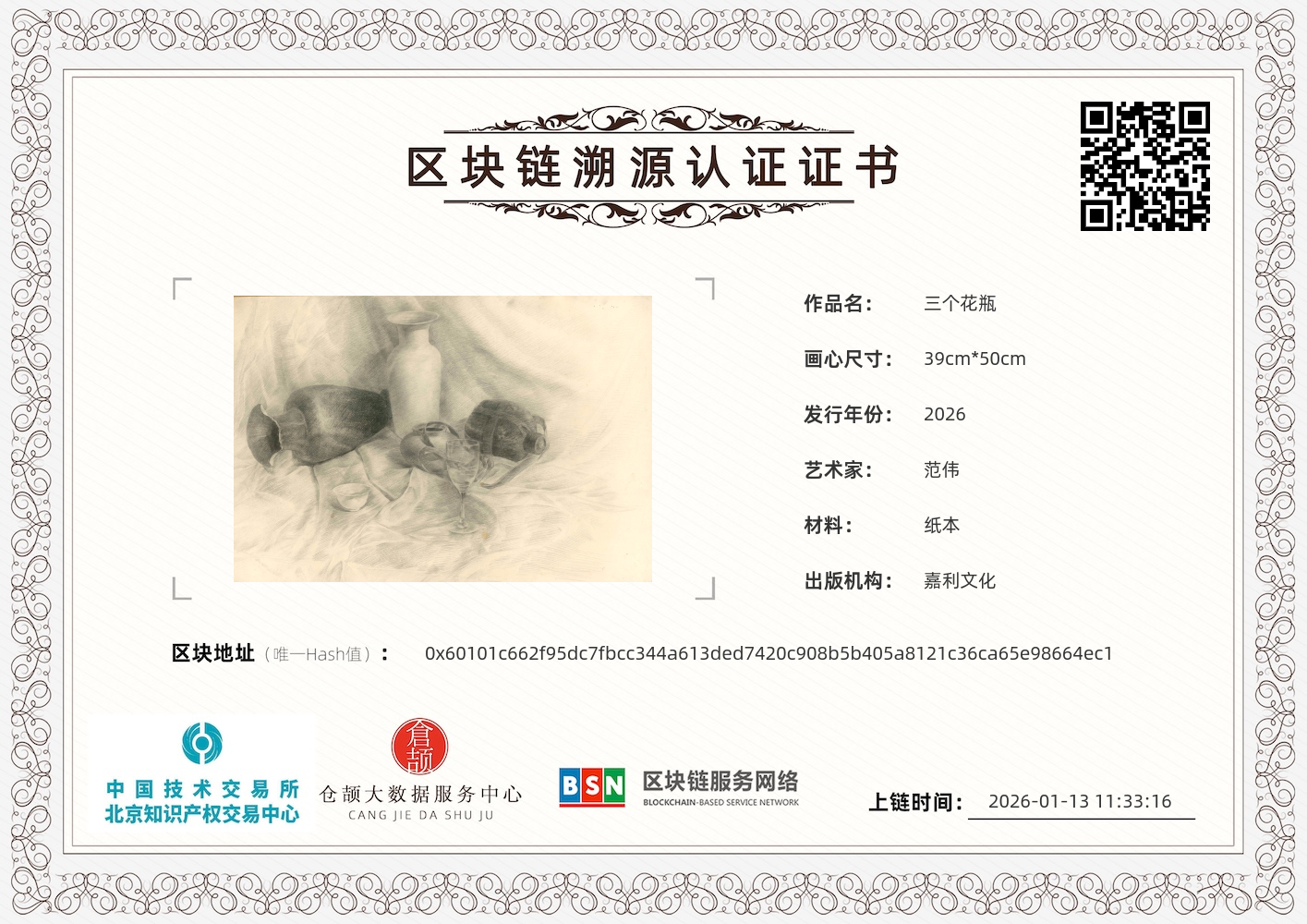 32 范伟 素描教学 静物三个花瓶 50x39cm 2026 1.8